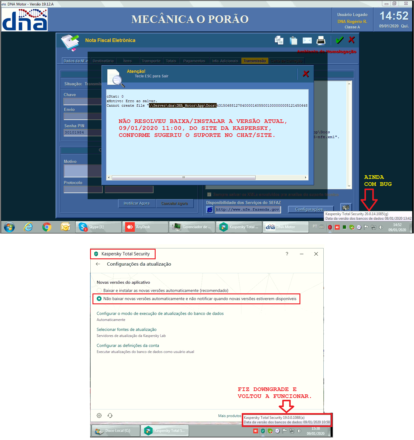 DNA Automação ...| Suporte Técnico |... PASTA: KASPERSKY_BUG
